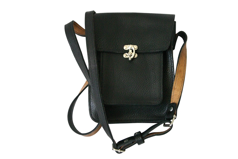 h 23 w 17 d 6cms leather lined with internal zip pocket, available with buckle or swivel catch