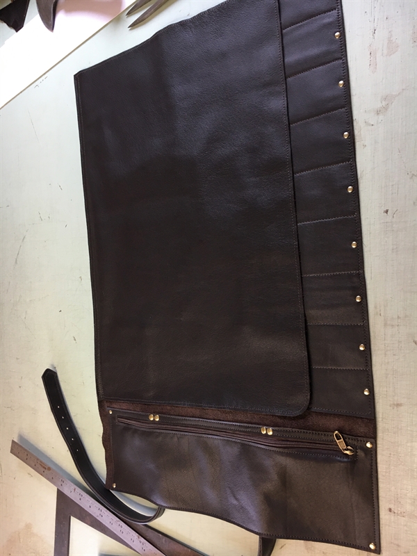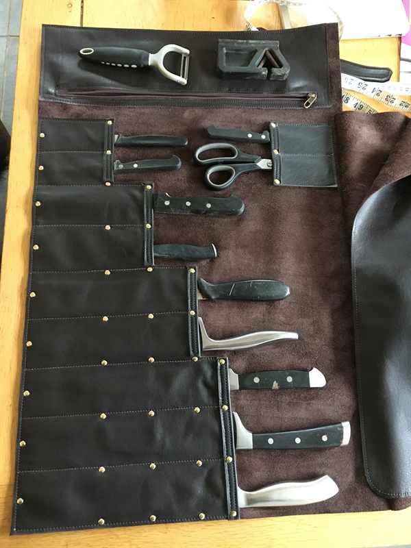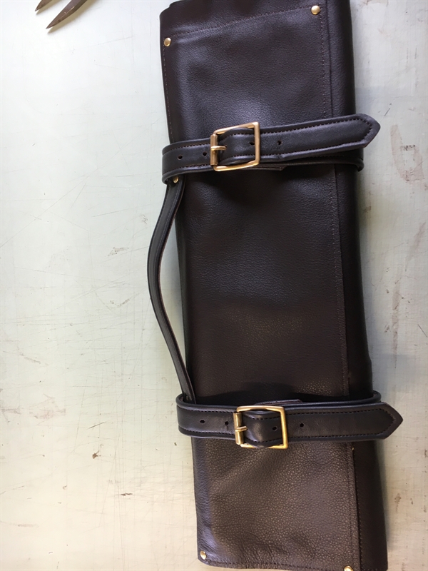 Professional knife roll in high quality full grain leather. Available in a range of colours on request.